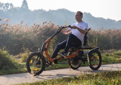 De Easy Rider driewielfiets is een zitdriewielfiets voor volwassenen. Door het unieke frame is er een lage instap en ligt het zwaartepunt lager. Een groot voordeel van deze derde generatie zitdriewielfiets is dat de Easy Rider heel eenvoudig fietst, ook als je nog nooit op een driewielfiets hebt gefietst. De Easy Rider heeft een comfortabele zitting met verstelbare rugsteun, stuitontlasting en opstaande randen aan de zijkant voor een beter zitcomfort en zijdelingse steun. Dit zorgt voor een stabiel en veilig gevoel.