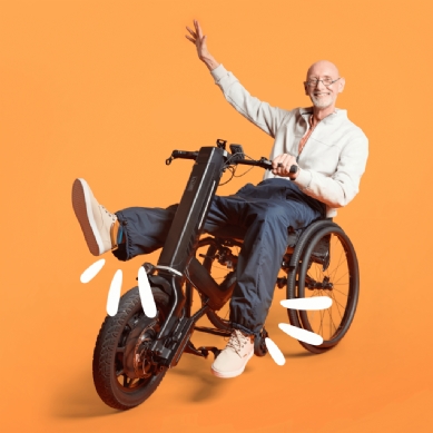 Nu met aparte onderbenen, ideaal geschikt voor gebruik met aankoppelfiets of handbike.